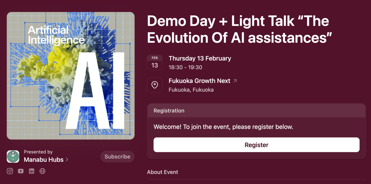 ✨ Get ready for ideas that will inspire, challenge, and ignite new conversations!AAApplication for Startups or Light Talk Speaker for Manabu Hubs Demo Day + Light Talk- HERE